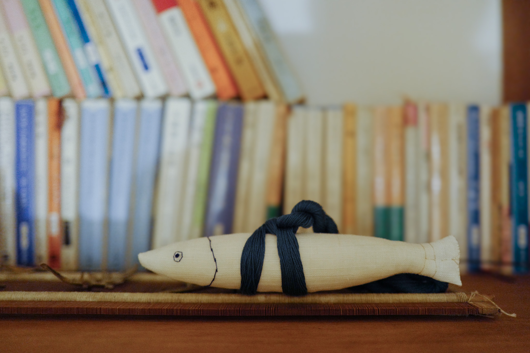 천에 무리가 가지 않도록 조심조심 몸통을 만들고, 동글동글 명태의 알같은 동그란 솜을 채우고, 푸른 실로 눈과 머리의 수를 놓아 꼬리는 금사로 장식했습니다.